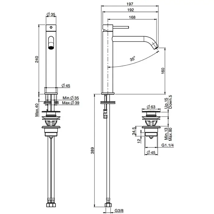 Высота излива, см