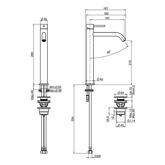 Высота излива, см