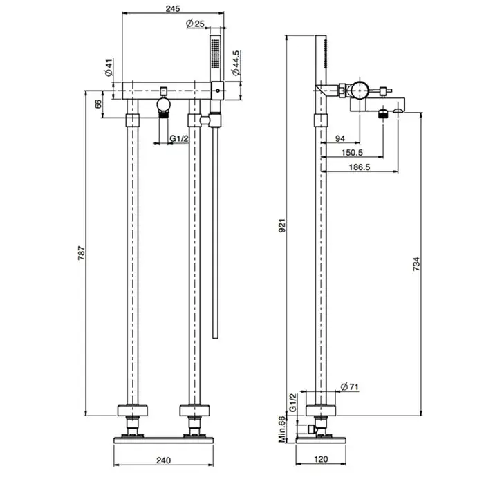 Fima Carlo Frattini Spillo Up Смеситель для ванны напольный, высота излива 72 см, цвет: black matt F3034/4NS