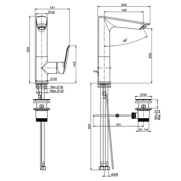 Fima Carlo Frattini Spot F3021WLX5NS Cмеситель для раковины, встраиваемый, пластина из ABS, внешняя часть, донный клапан click-clack, излив: 204 мм., цвет: чёрный матовый