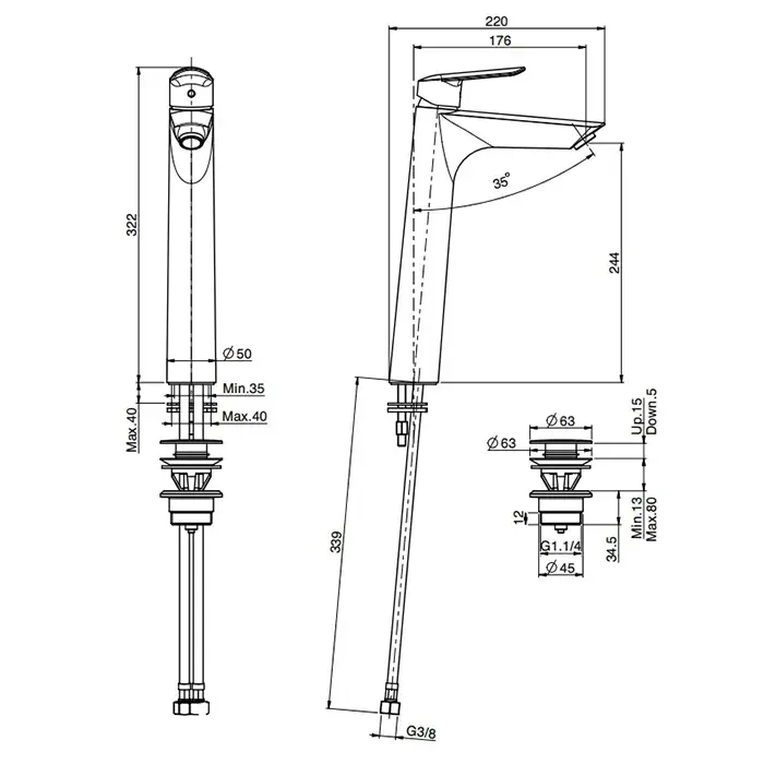 Высота излива, см