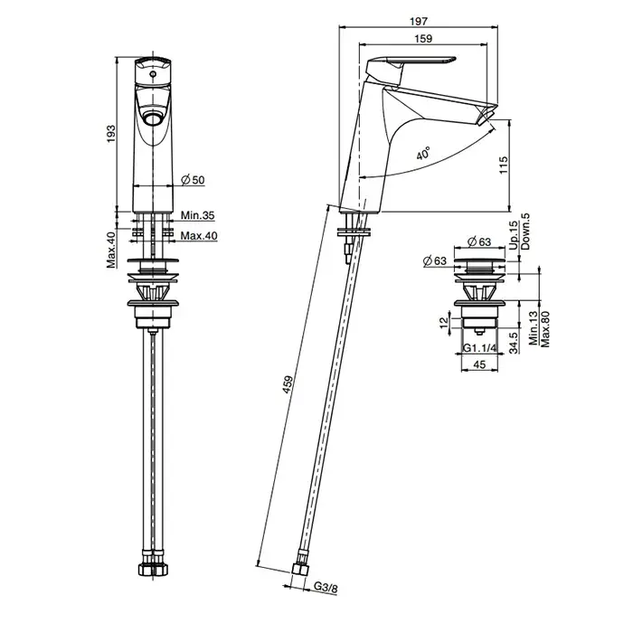 Высота излива, см