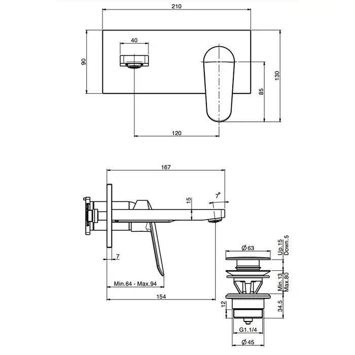 Fima Carlo Frattini Spot Смеситель для раковины встраиваемый, излив 15 см, цвет: black matt F3021WX5NS