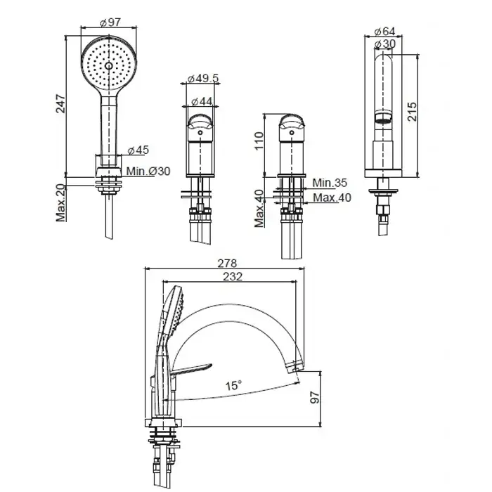 Боковой душ и форсунки
