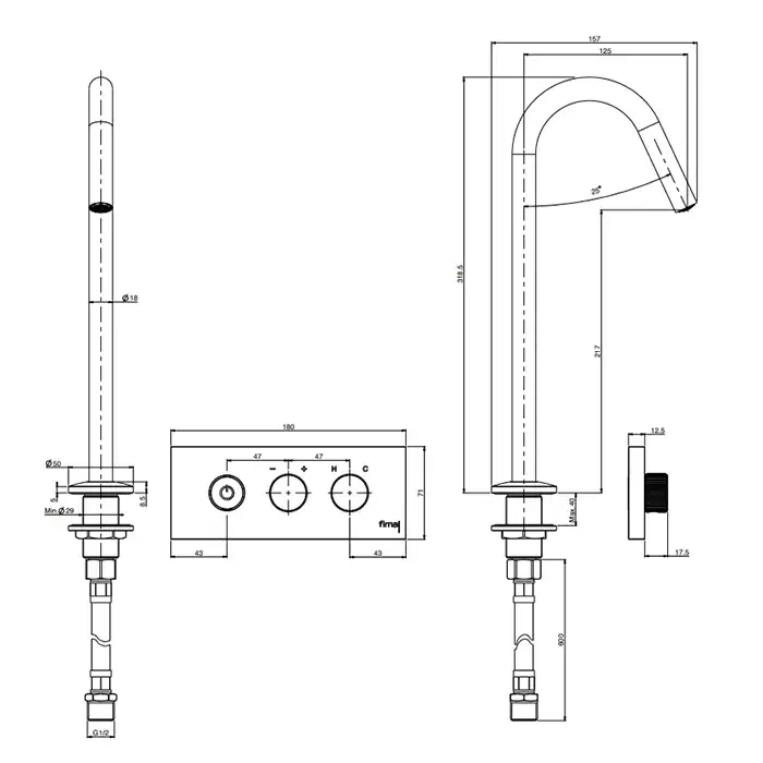 Carlo Frattini Switch Душевая стойка с термостатическим смесителем, верх душ с 3 струями, ручн душ и шланг 1500мм, стекло черное, цвет: черный матовый