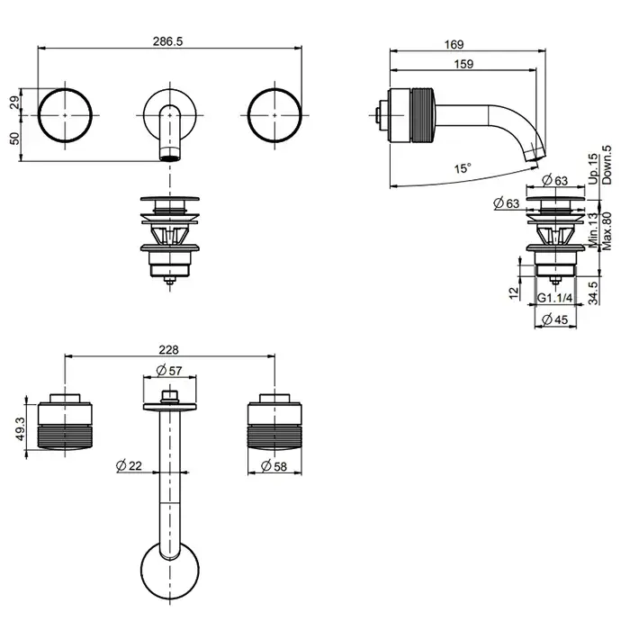 Carlo Frattini Texture Collection Смеситель для раковины, на 3 отверстия, донный клапан click-clack, цвет: золото