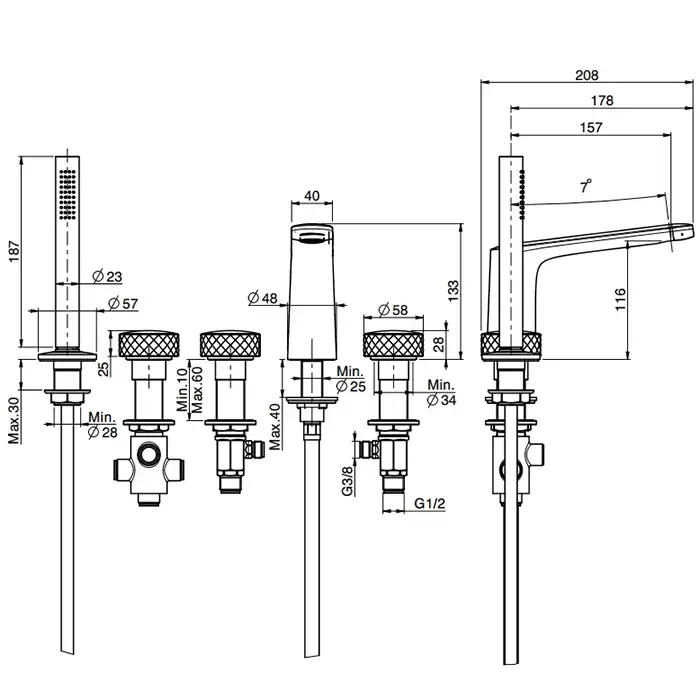 Fima Carlo Frattini Texture Collection Смеситель на борт ванны с душем, без ручки, цвет: gold F5614HOR