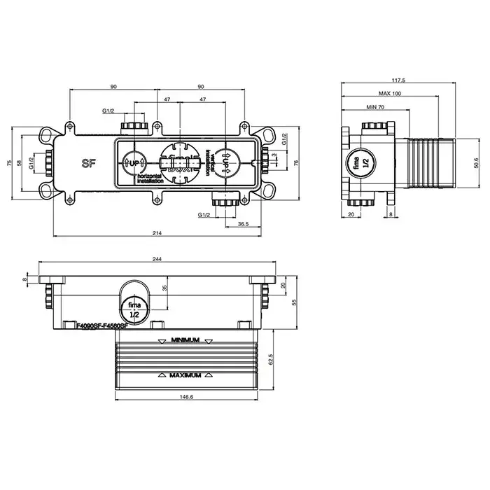 Fima Carlo Frattini Внутренняя часть встраиваемого смесителя для душа/ванны, 2 потребителя F4560SF