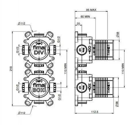 Fima Carlo Frattini Внутренняя часть встраиваемого смесителя для душа, 2 потребителя F3090