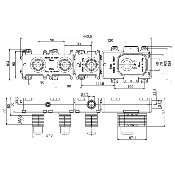 Fima Carlo Frattini Внутренняя часть встраиваемого смесителя для душа/ванны, 2 потребителя F2462/1M