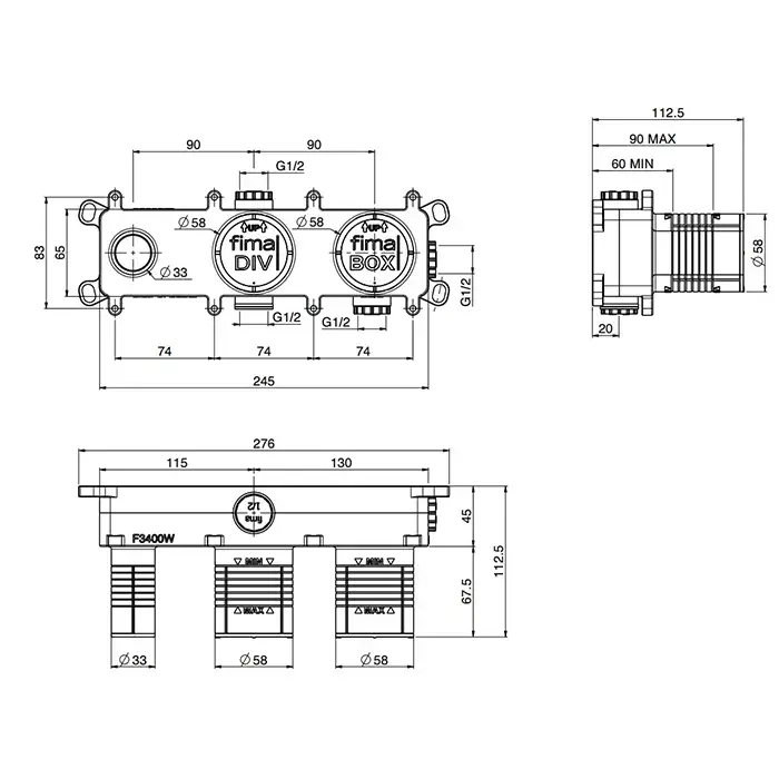 Fima Carlo Frattini Fimatherm Maxima F5333X3CR Смеситель для душа встроенный, термостатический, 3 запорных вентиля, внутренняя часть (F2463) в комплекте, цвет: хром.