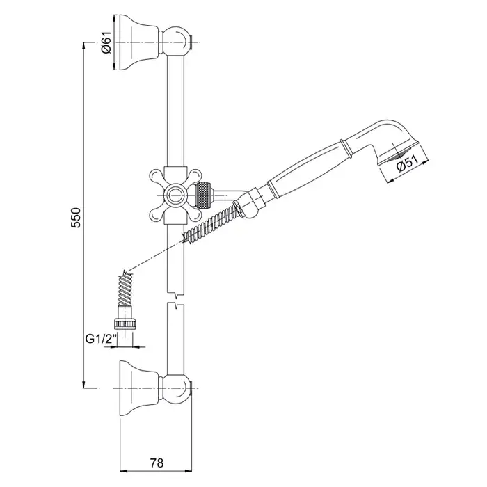 Carlo Frattini Wellness Душевая штанга с ручным душем и шлангом 1500 мм., цвет: хром