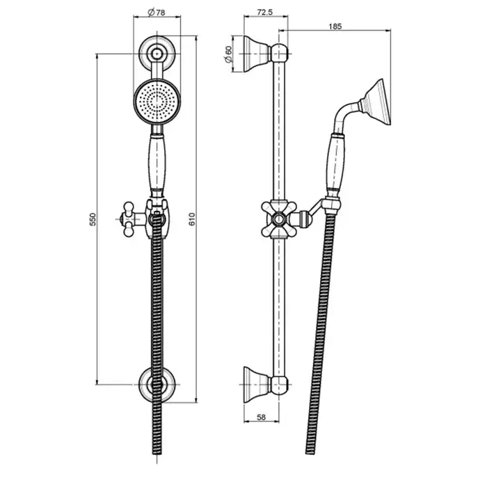 Carlo Frattini Wellness Душевая штанга с ручным душем и шлангом 1500 мм., цвет: хром