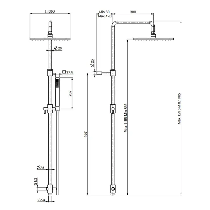 Дивертор, Верхний душ, Лейка, Регулируемая по высоте штанга, Шланг Chromalux