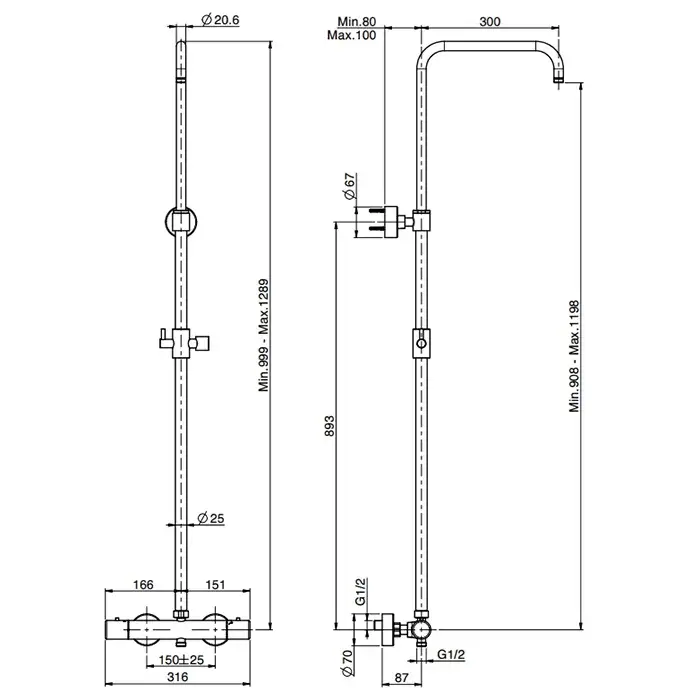 Fima Carlo Frattini Wellness Душевая стойка: смесит, без верхнего и ручного душа, цвет: black matt F3255SNS