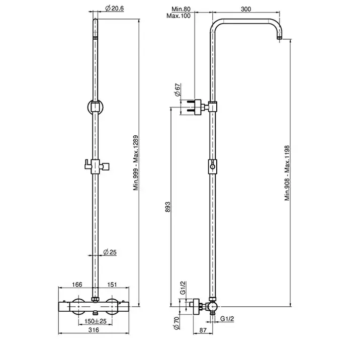 Carlo Frattini Wellness Душевая штанга с ручным душем и шлангом 1500 мм., цвет: хром