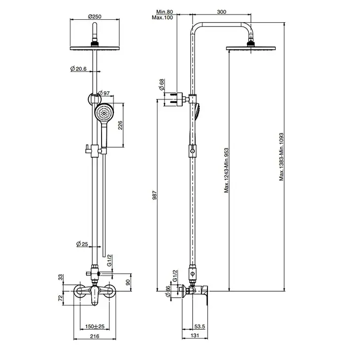 Fima Carlo Frattini Wellness Душевая стойка: смеситель, верхний и ручной душ, цвет: chrome F3835/2CR