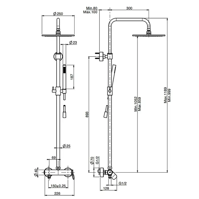 Смеситель, Верхний душ, Лейка, Регулируемая по высоте штанга, Шланг Chromalux
