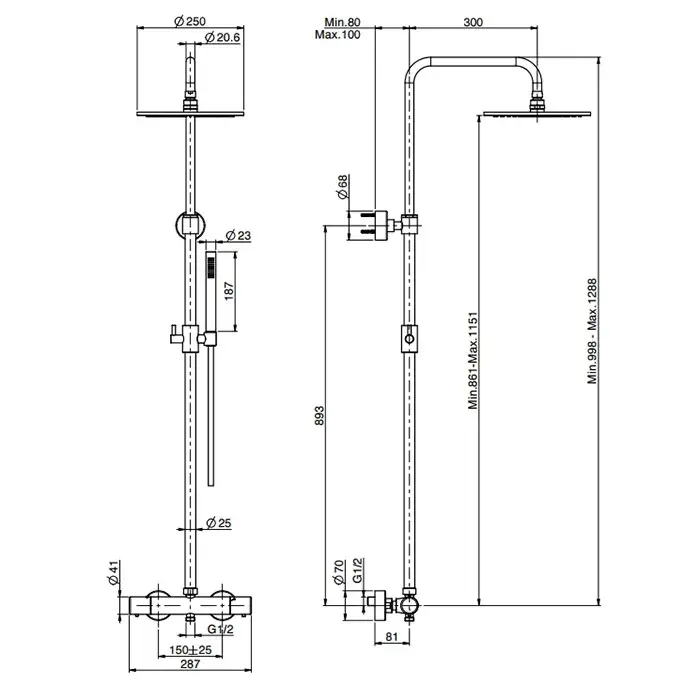 Термостат, Верхний душ, Лейка, Регулируемая по высоте штанга, Шланг Chromalux
