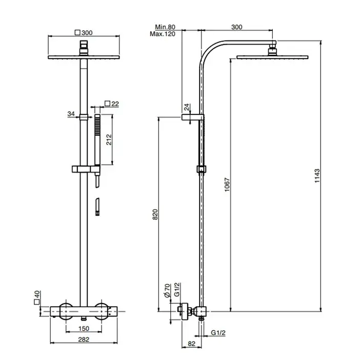 Термостат, Верхний душ, Лейка, Регулируемая по высоте штанга, Шланг Chromalux