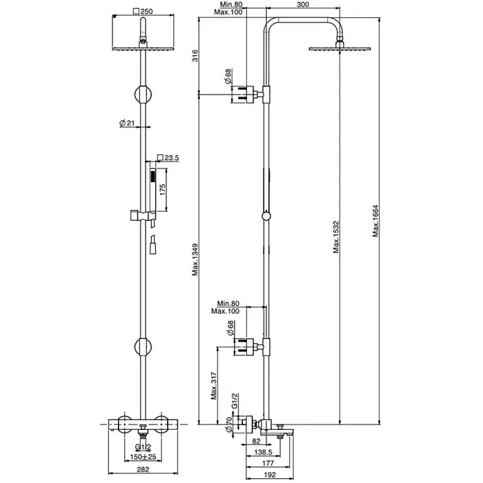 Термостат, Верхний душ, Лейка, Регулируемая по высоте штанга, Шланг Chromalux