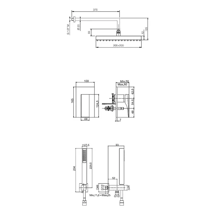Смеситель, Верхний душ, Кронштейн, Лейка, Шланговое подключение с держателем, Шланг Chromalux