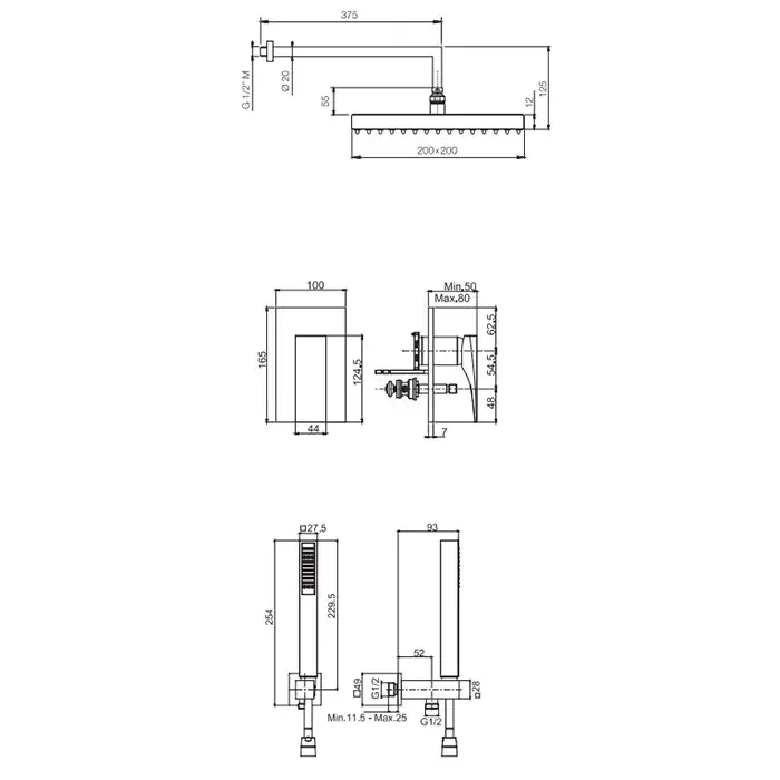 Fima Carlo Frattini Wellness Душевой комплект встраиваемый: смеситель, душ, цвет: black matt F3979NS