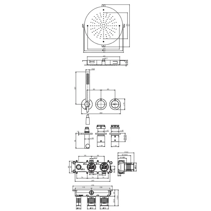 Размер верхнего душа, см