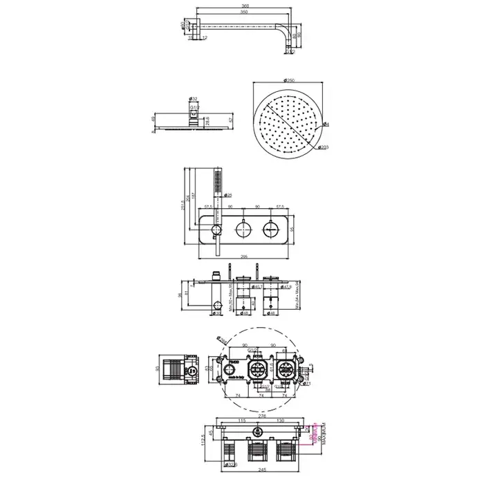 Термостат с выпуском, Держателем, Верхний душ, Кронштейн, Лейка, Шланг Chromalux