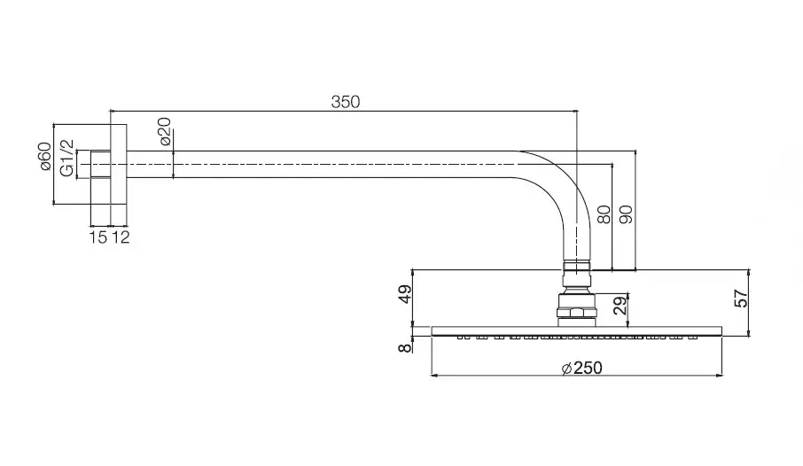 Размер верхнего душа, см