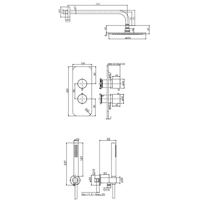 Термостат, Верхний душ, Кронштейн, Лейка, Шланговое подключение с держателем, Шланг Chromalux