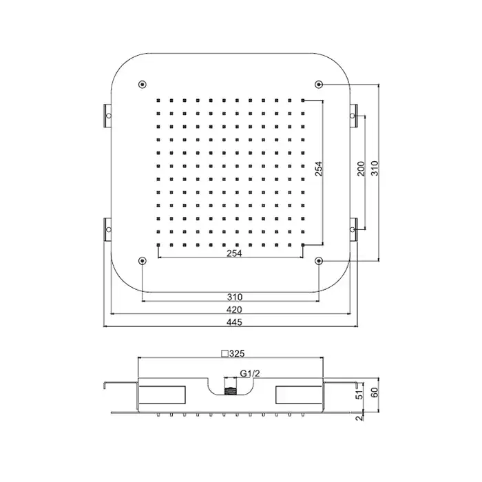 Fima Carlo Frattini Wellness Потолочный душ 42х42 см, встраиваемый, 1 режим, цвет: chrome F2417CR