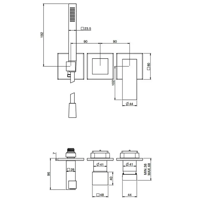 Fima Carlo Frattini Zeta Смеситель для душа, встраиваемый, с ручным душем, 2 источника, цвет: черный матовый