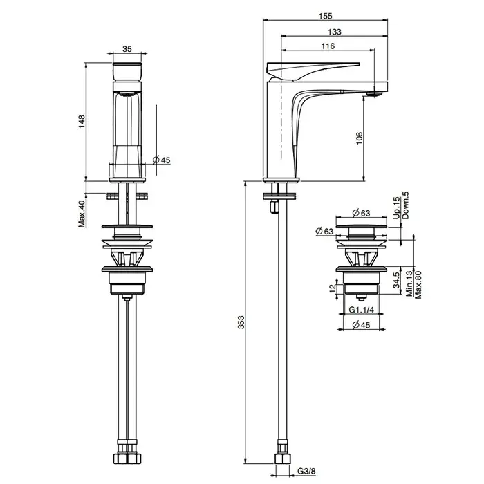 Fima Carlo Frattini Zeta Смеситель для раковины, встраиваемый, излив: 19.9см., цвет: черный матовый
