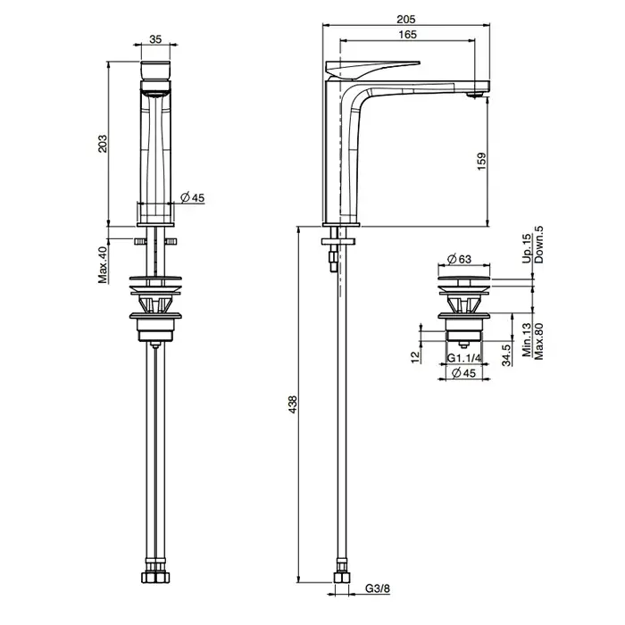 Высота излива, см