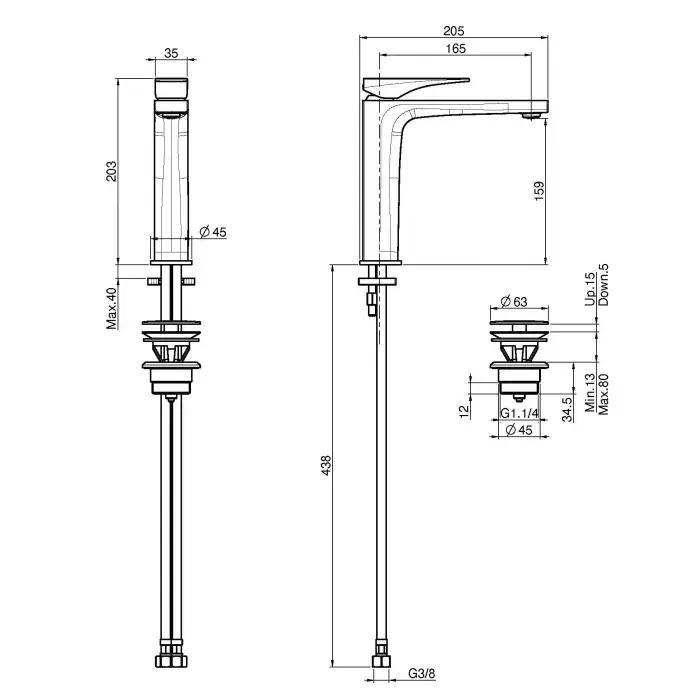 Высота излива, см