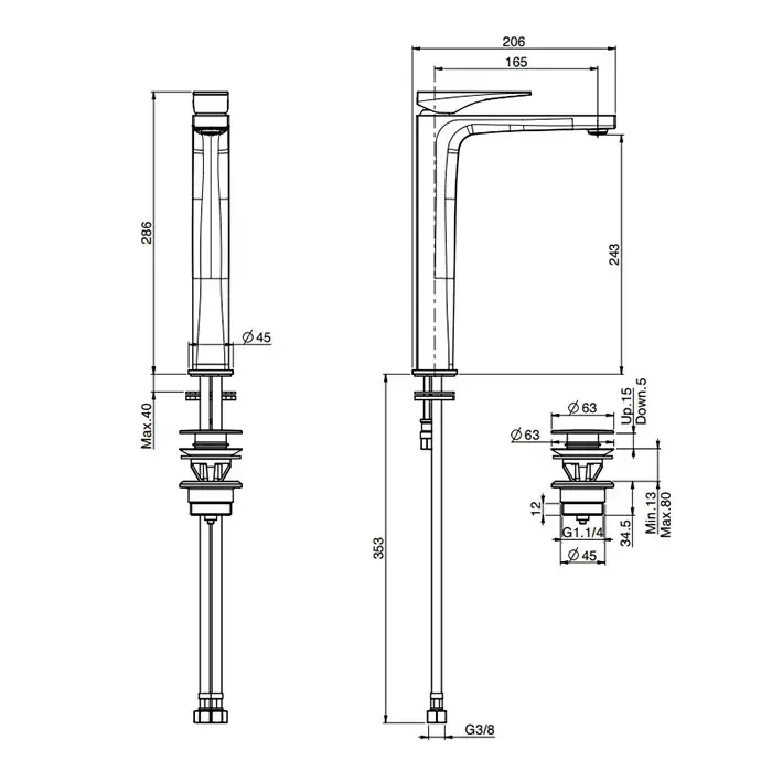 Высота излива, см