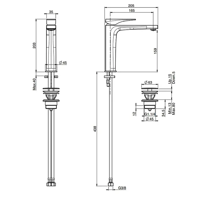 Fima Carlo Frattini Zeta Смеситель для раковины с донным клапаном, излив 16,5 см, цвет: black matt F3961LNNS