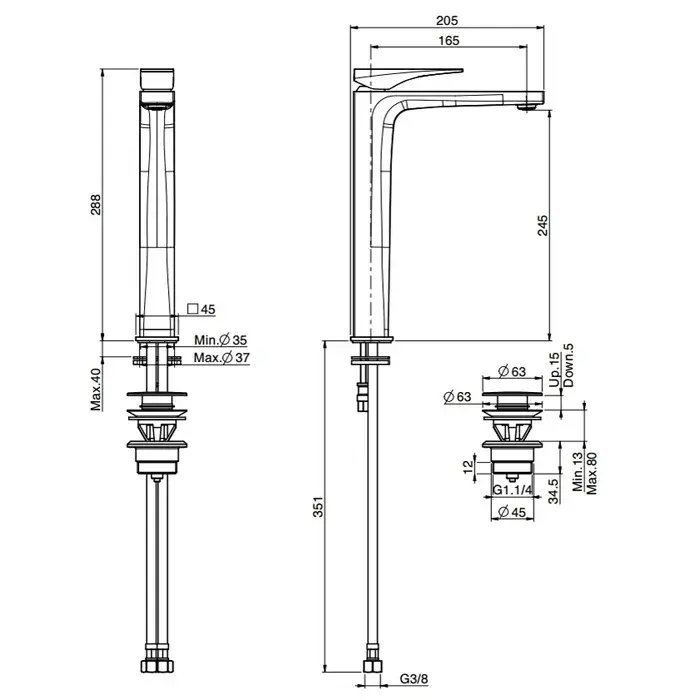 Fima Carlo Frattini Zeta Смеситель для раковины, встраиваемый, излив: 19.9см., цвет: черный матовый