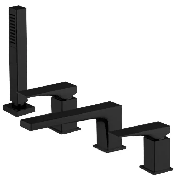 Fima Carlo Frattini Zeta Смеситель на борт ванны, на 3 отв., с ручным душем, цвет: черный матовый