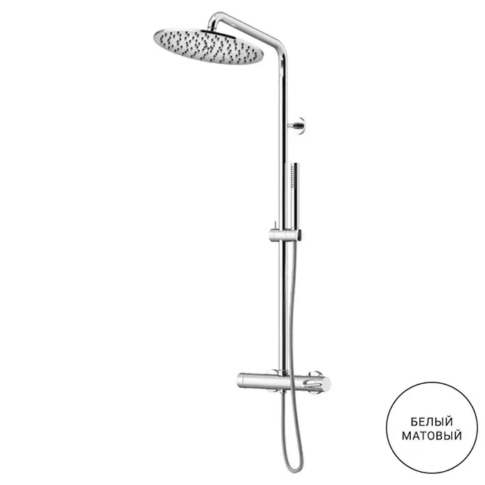 GATTONI CIRCLE ONE Смеситель для ванны монокомандный настенный, ручной лейкой и верхним душем 250мм, цвет BIANCO OPACO (см. полный аналог 9195/PDBO)