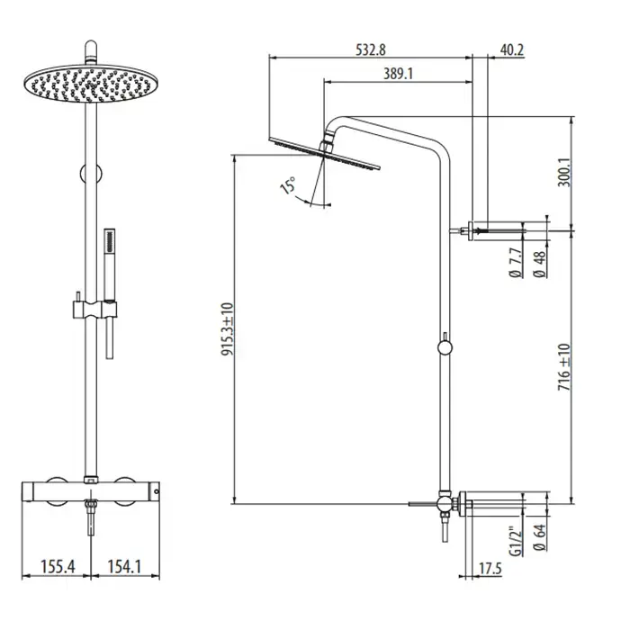 GATTONI CIRCLE TWO Комплект для душа: монокомандный смеситель, душевая стойка, душевая лейка 250мм, ручной душ, цвет хром