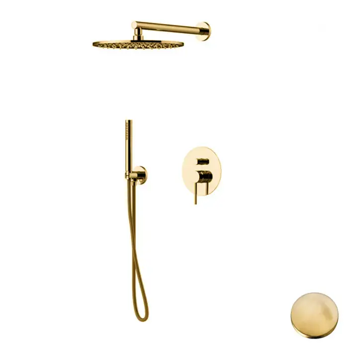 GATTONI CIRCLE TWO/ONE Комплект для душа со встроенным смесителем с Gbox с ручной лейкой и верхним душем 250 мм, цвет SATIN GOLD