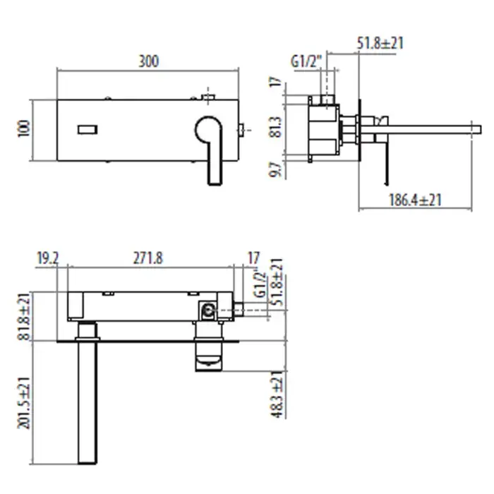 Gattoni Color Смеситель встроенный для раковины на коробке горизонтальный, цвет: хром