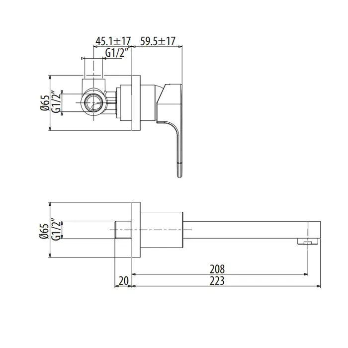 Gattoni H2Omix1000 Смеситель для раковины встраиваемый в стену, излив 208мм, укомплектован встроенной частью, цвет: хром (Снято с пр-ва)