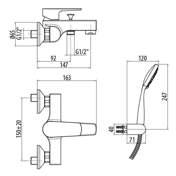 Gattoni H2omix3000 Смеситель для ванны с лейкой и шлангом, цвет хром