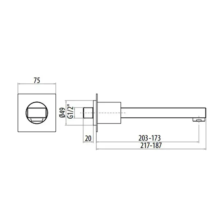 Gattoni Kubik Излив настенный 173-203мм, цвет: хром глянцевый