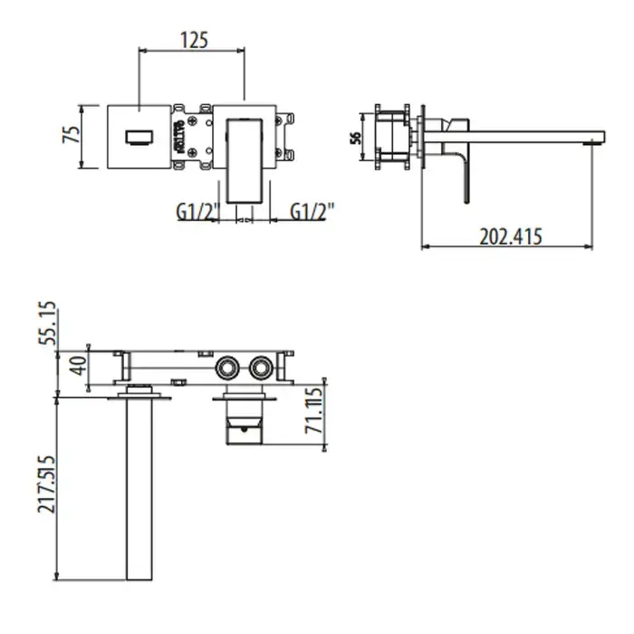 Gattoni Kubik Смеситель встраиваемый на 2 отверстия, с внутренней частью G-BOX, излив 202 мм, цвет: белый матовый