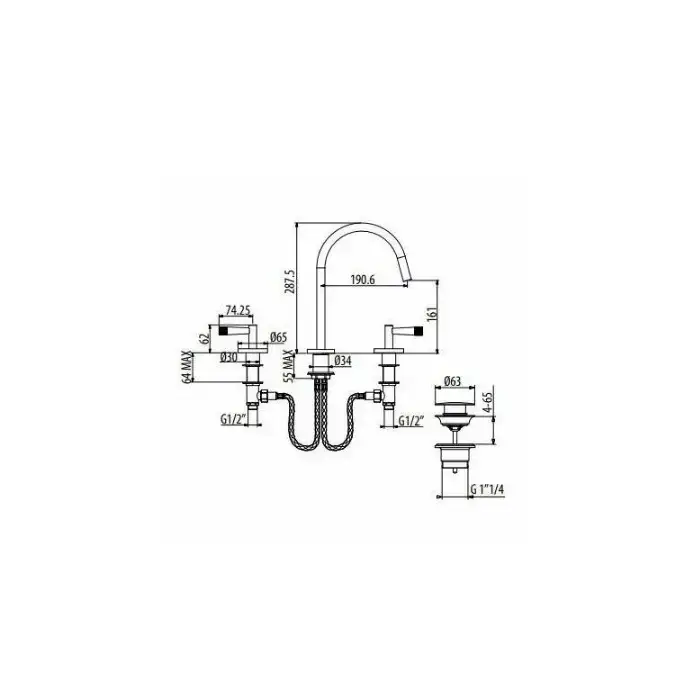 Gattoni MD Смеситель для раковины, 3 отв., ручки ALZO, с донным клапаном, цвет: хром