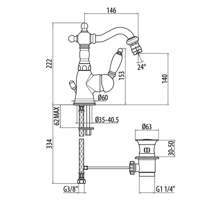 Gattoni Orta Смеситель для биде с высоким изливом, с белой ручкой, с донным клапаном, цвет (дизайн 2018г)